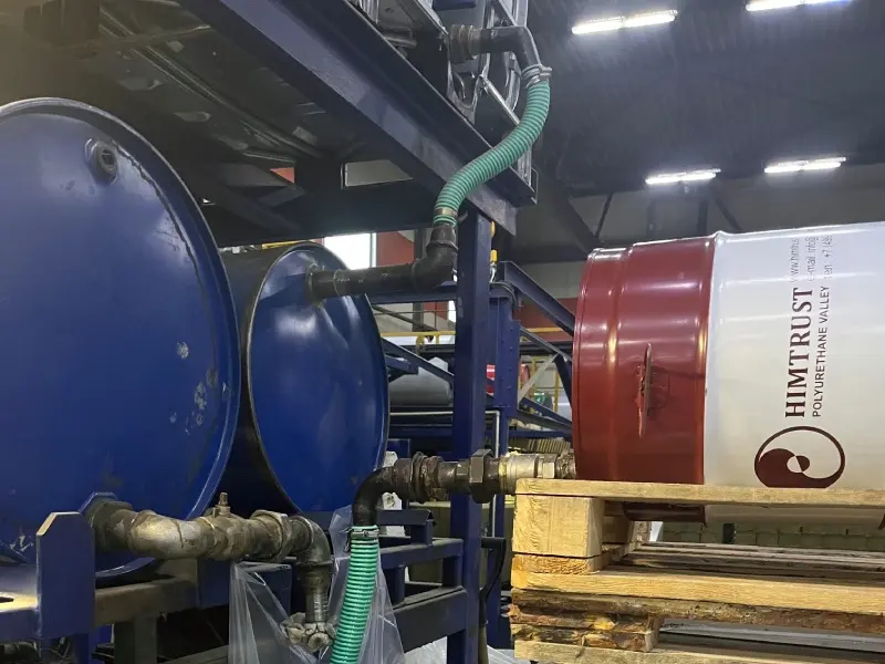 В рамках промышленного тестирования, специалисты АО «Химтраст» на производственной площадке провели оценку эффективности клеевого состава «Химтраст ПУ-Клей для сэндвич-панелей 2К 100:150_125-27».